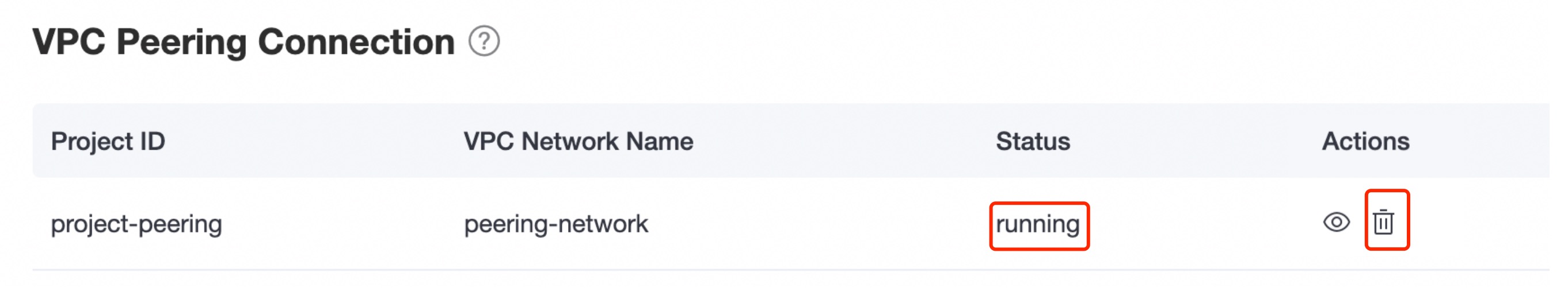 To delete a peering connection, you need to ensure that the status of peering connection is running.
