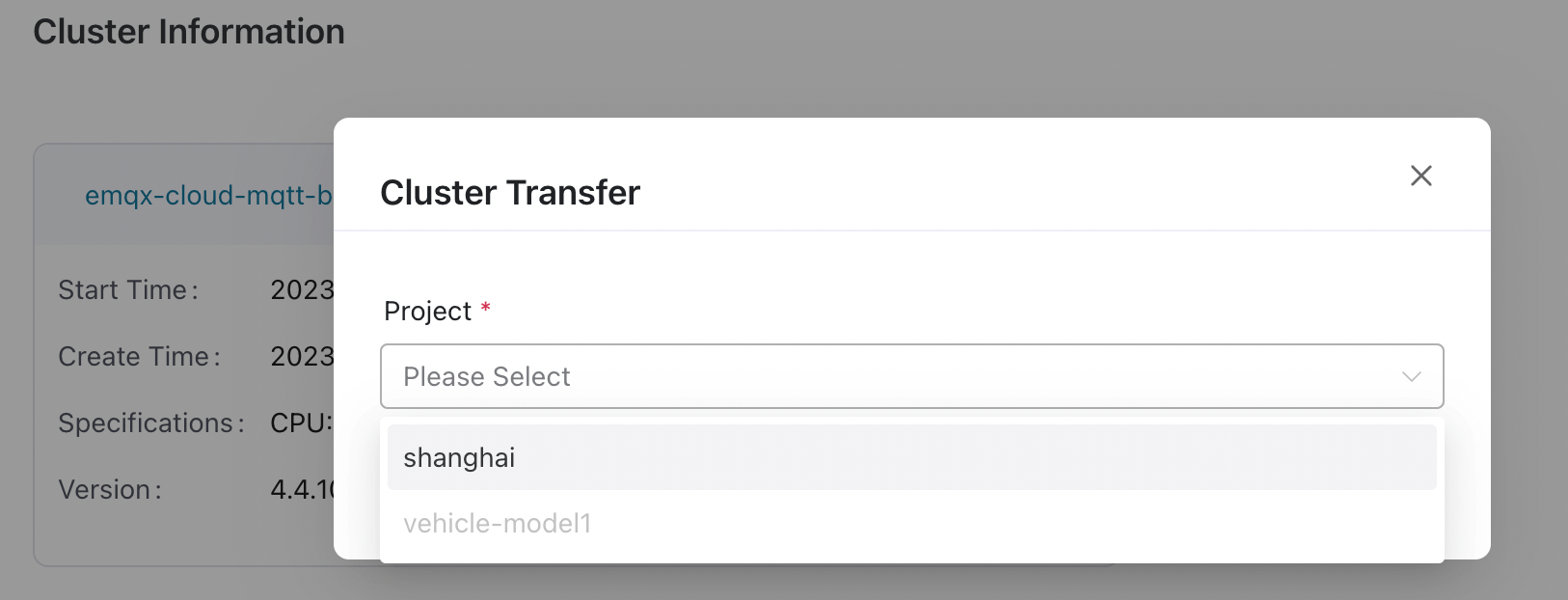 For easier management, ECP provides a feature for transferring EMQX clusters across projects.