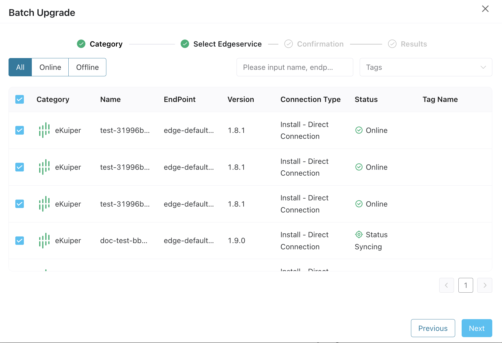 ECP supports the upgrading of edge services hosted by ECP in batches. This functionality further streamlines the process and convenience of managing edge services, ensuring they're always running the latest, most efficient versions.
