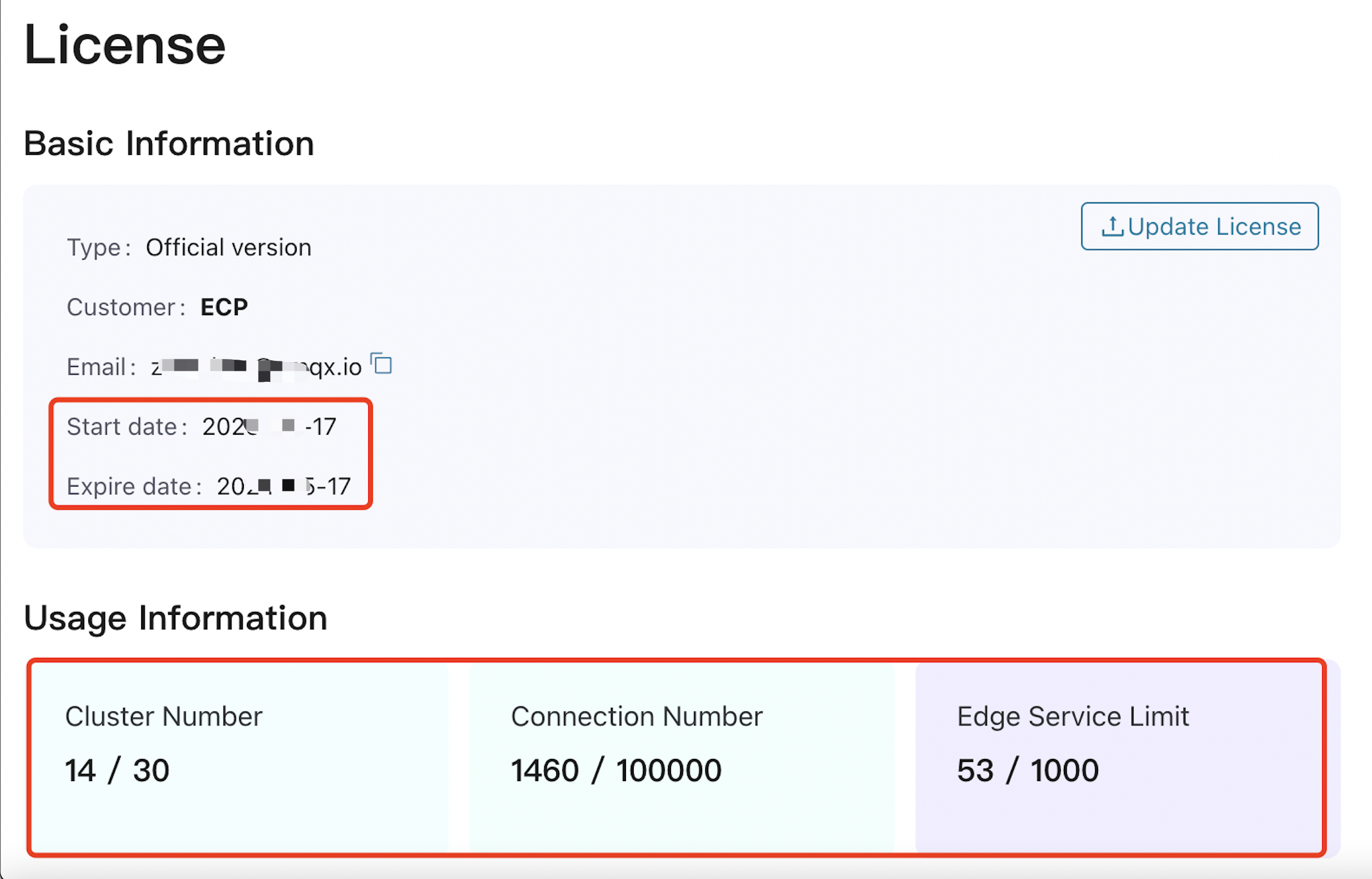 | Configure License | ECP comes with a trial license after installation, and you can also apply for and upload a new license. |