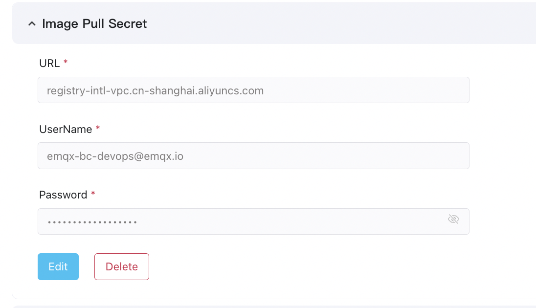 System admins can add, edit or delete EMQX image versions. If you have internet connectivity, you can use public image addresses. Additionally, you can also specify a private image registry service. On how to configure a Telegraf image, see Image Repository Configuration.