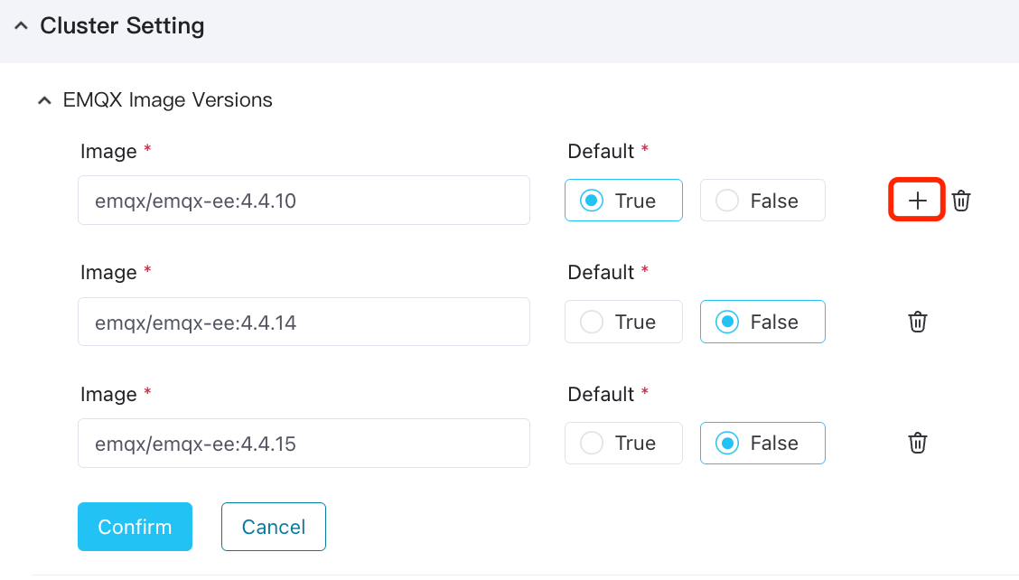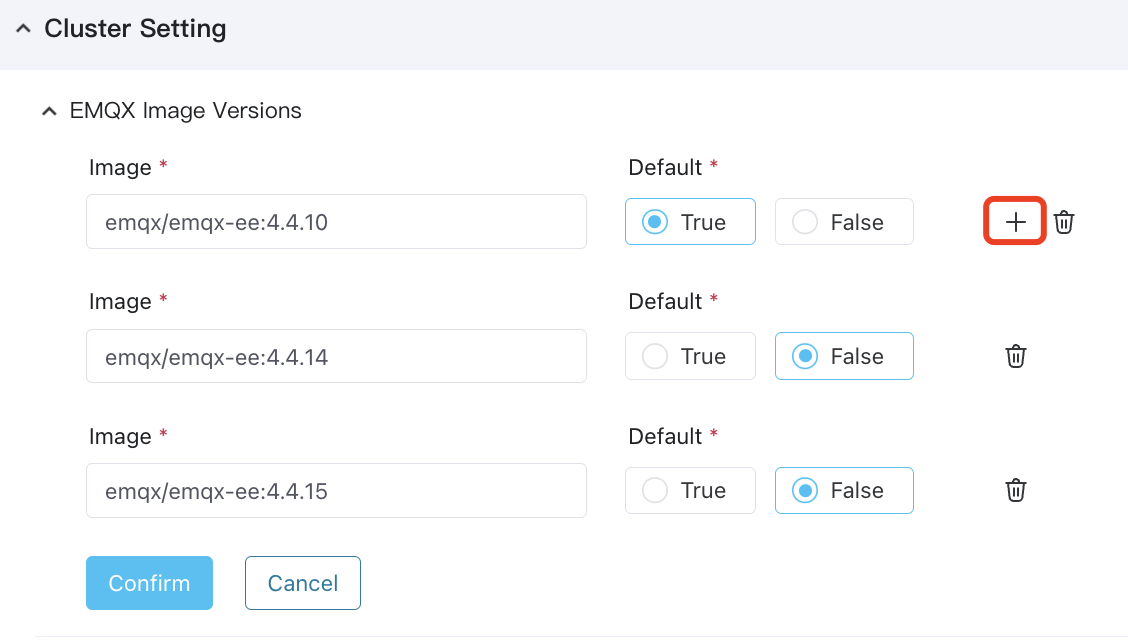 - Expand the EMQX Cluster Setting -> EMQX Image Versions.