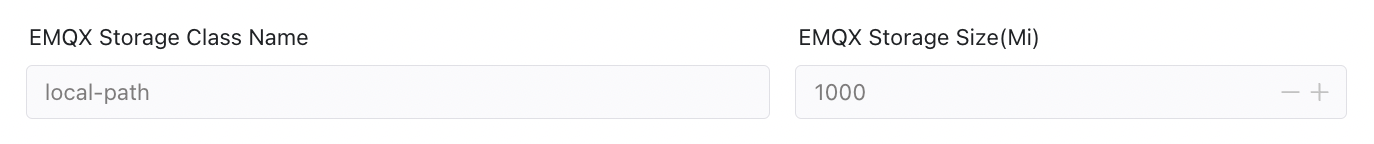 | EMQX Storage Size | 512Mi | Occupied disk space size |