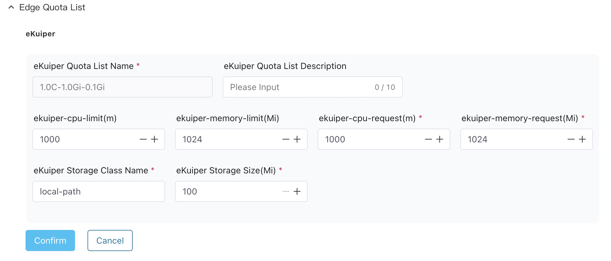 | NeuronEX Quota List Note | 1C1G0.5G | The specification name displayed when installing the NeuronEX |