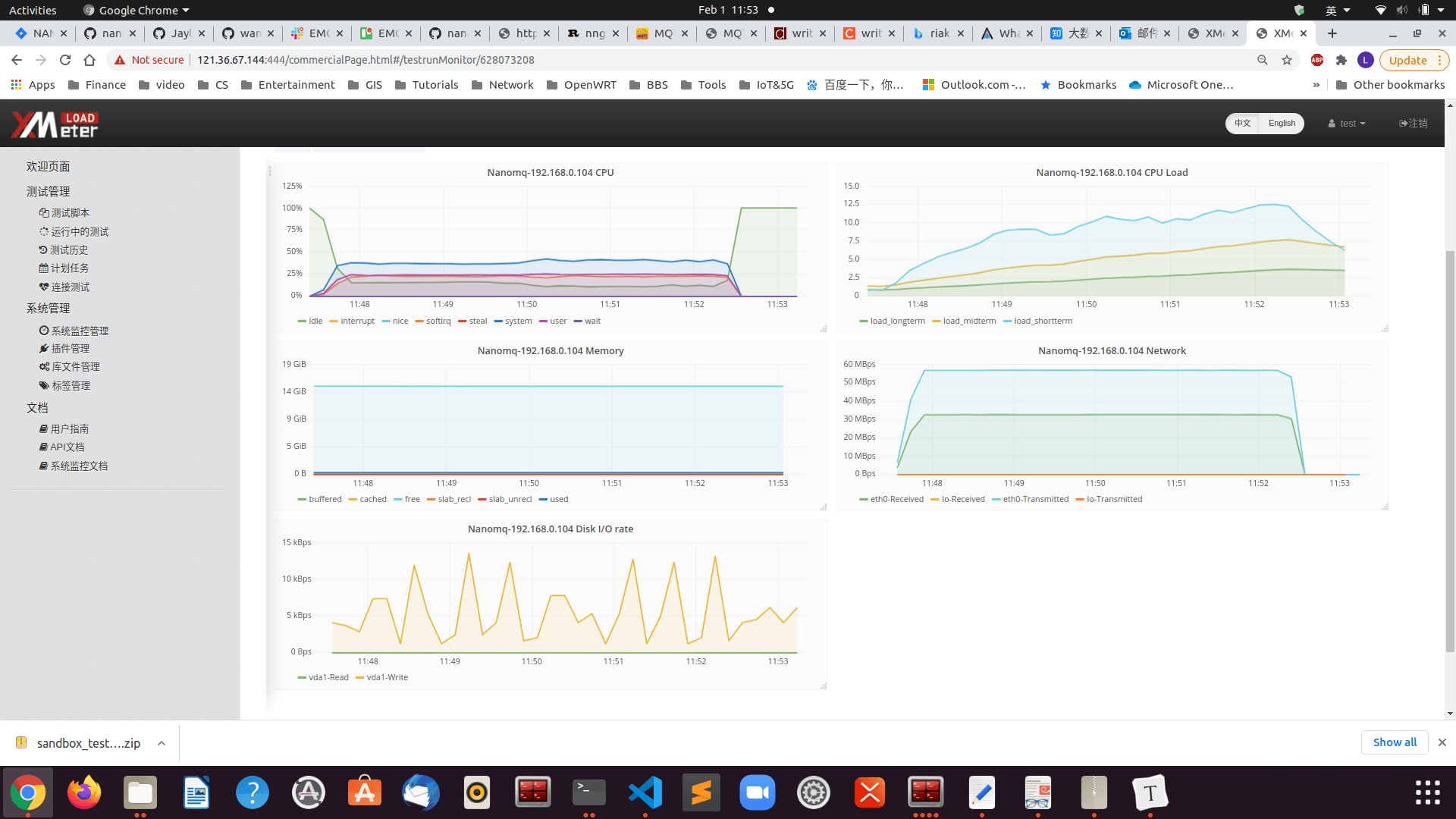 The test deployment diagram in Huawei Cloud is shown below. EMQ Benchmark Tools was used to simulate a large number of MQTT connections in this test. XMeter provides a test tool based on the JMeter MQTT plugin to simulate business test scenarios. XMeter has built-in tools for monitoring the resource usage of servers running nanomq and comparing the information that comes with the operating system.