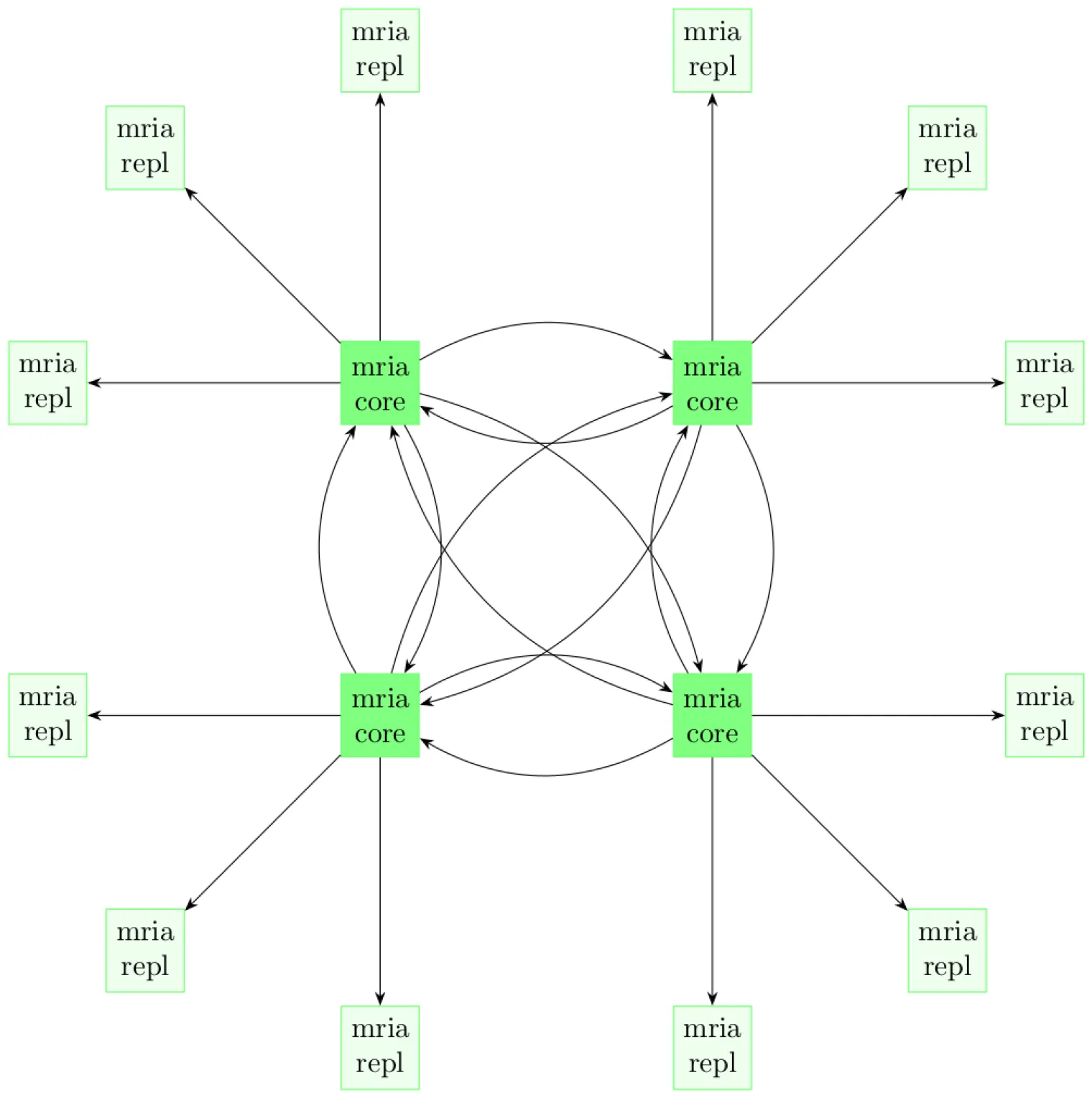 Communication between Core and Replicant nodes in a typical EMQX cluster is illustrated in the following diagram: