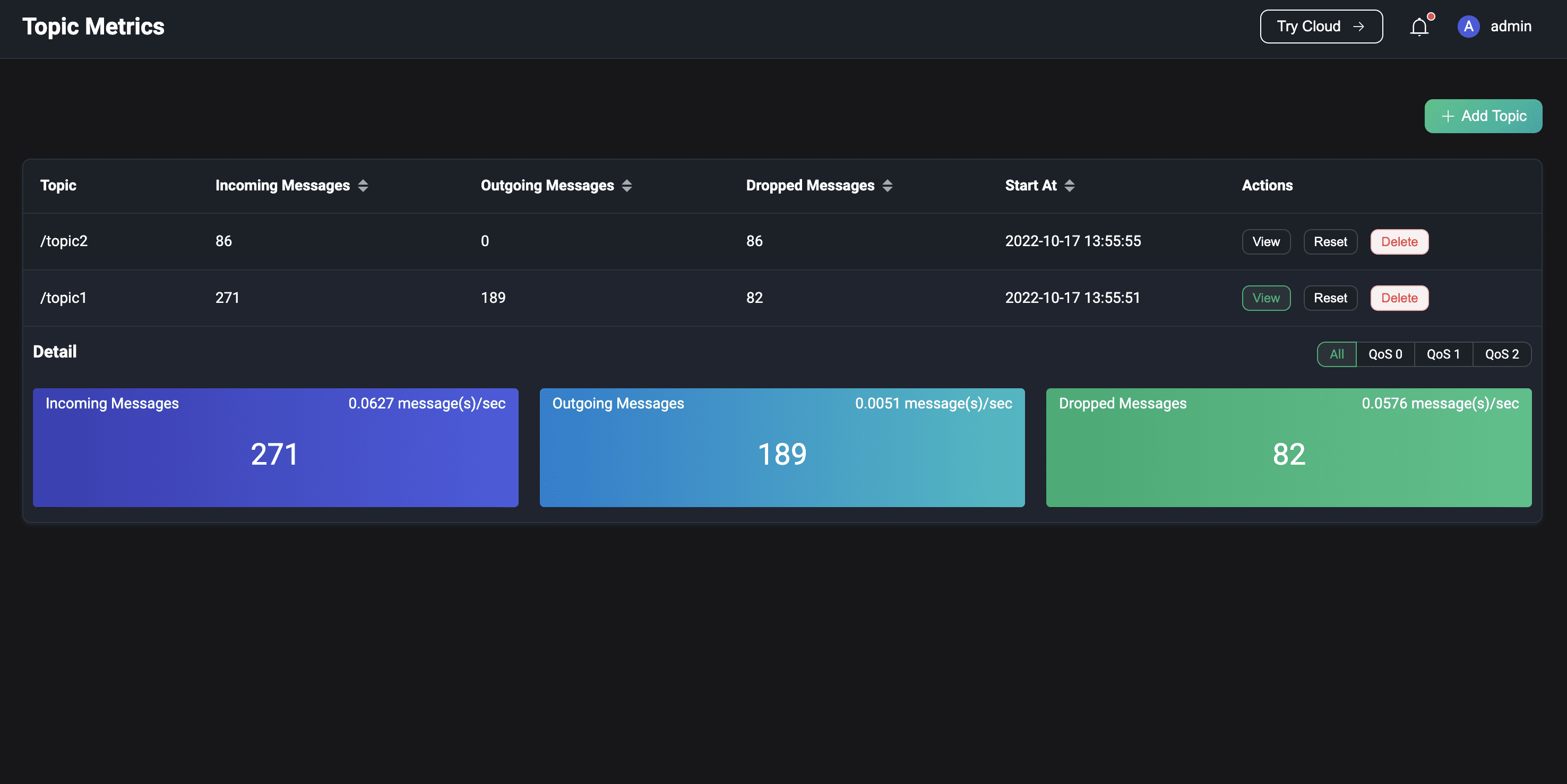 - Topic Monitoring: Monitor and view message incoming, outgoing and dropped data based on topics.