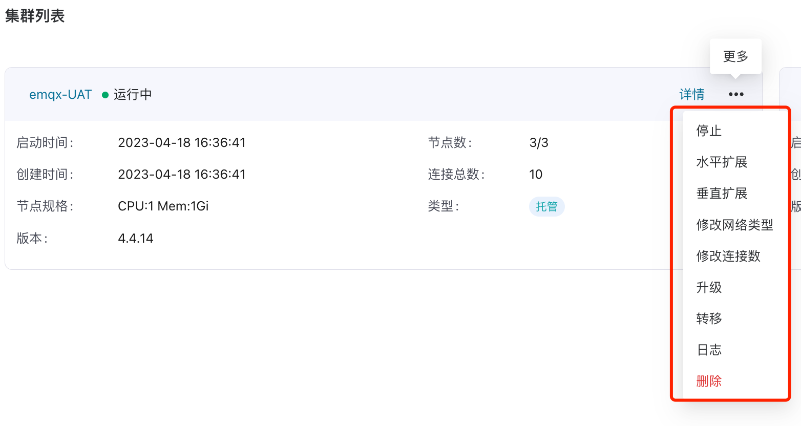 对于不同版本的 EMQX 集群,在集群管理上存在一定的功能差异,具体请参考 不同版本EMQX纳管集群的功能差异。