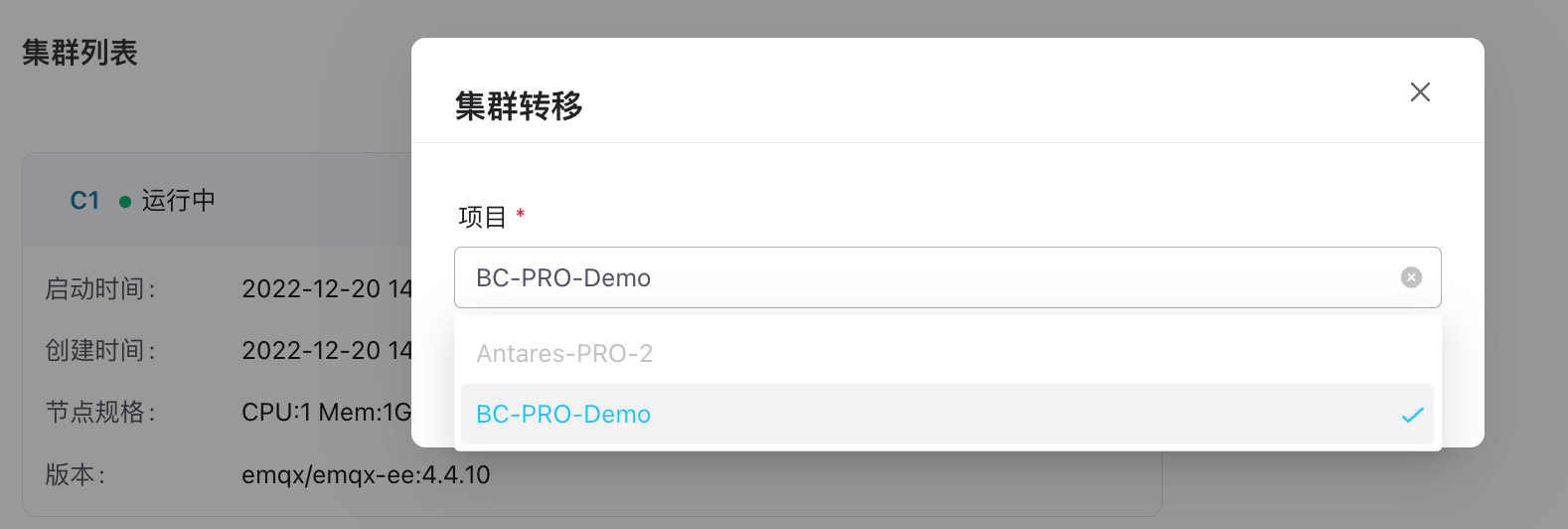 为了方便管理,ECP 提供了 EMQX 集群跨项目转移功能。