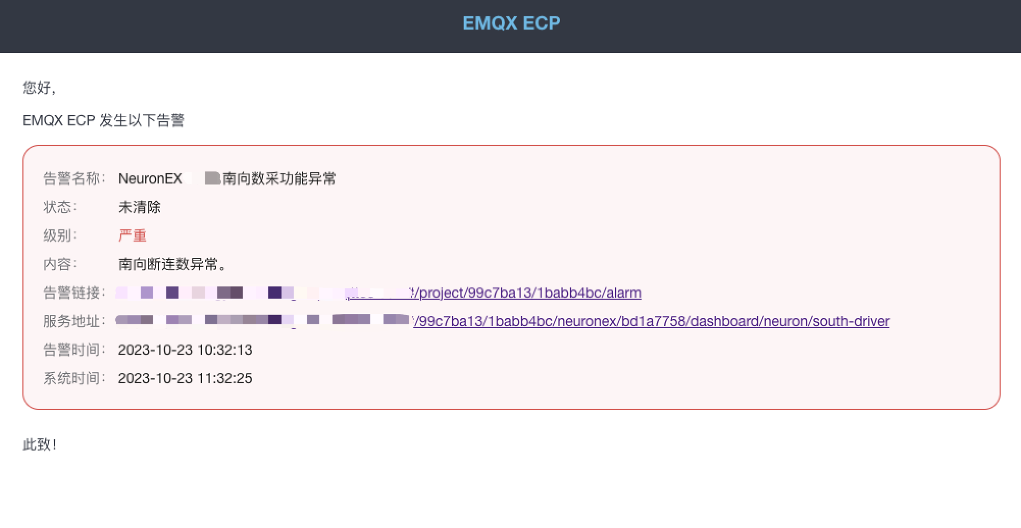 - 发生告警后,设置的邮箱地址会收到告警通知。