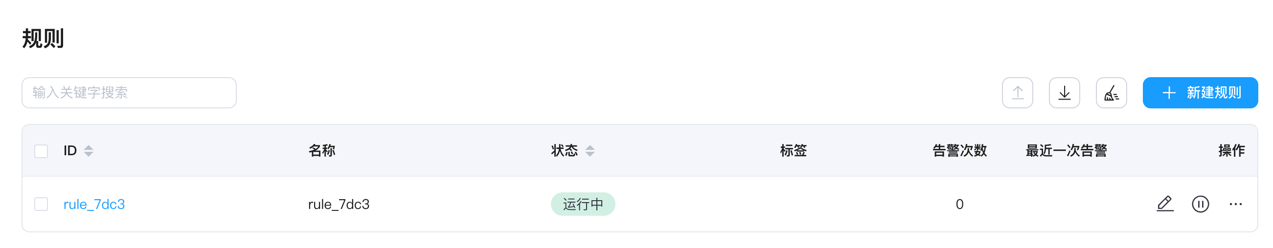 接下来我们在数据处理->规则 页面,点击 新建规则,进行如下操作,规则编辑器的内容改为如下,点击规则调试按钮,即可看到从 MySQL 中获取的数据。
